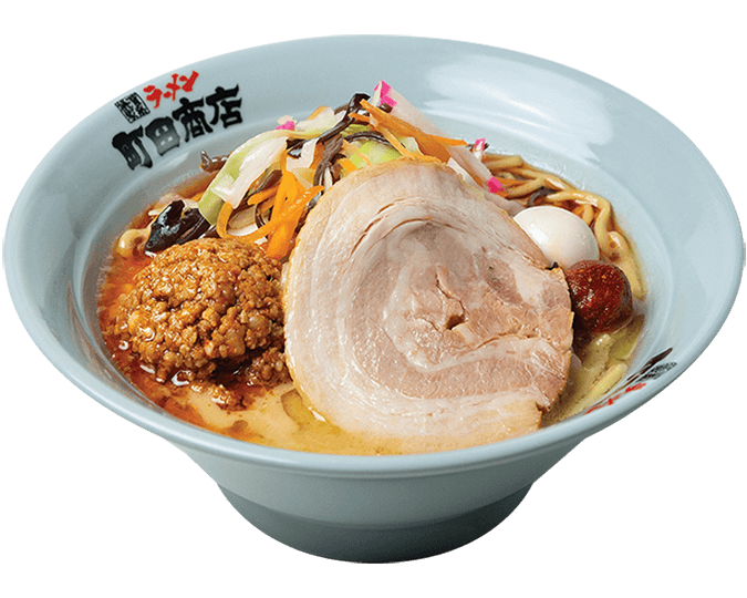 Topped with a piece of chashu, spicy pork, vegetables, quail egg, spicy umami oil, and (optional) spicy bomb.